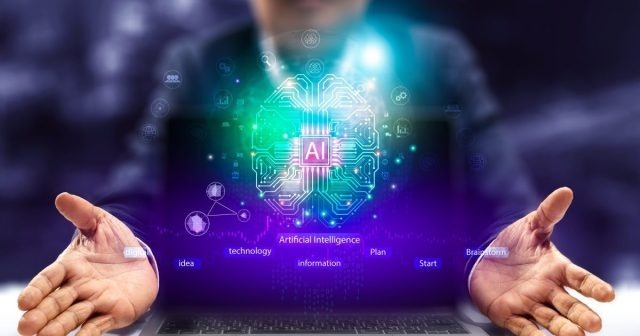 [Image Description: A high-contrast conceptual image of a glowing robotic skull appearing on a laptop screen, with translucent lines of binary code flowing from a chatbot window into the computer’s motherboard.]